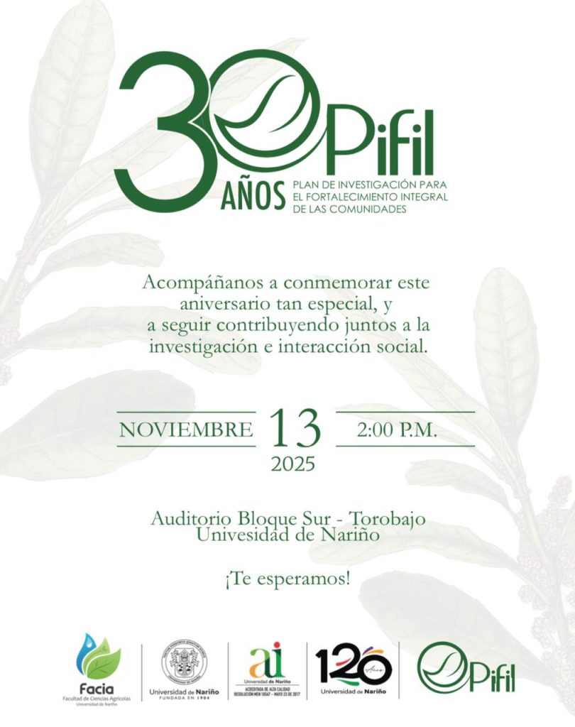 El Plan de Investigación para el Fortalecimiento Integral de las Comunidades – PIFIL cumple tres décadas de labor ininterrumpida, promoviendo el desarrollo rural, la innovación y la interacción social desde la Facultad de Ciencias Agrícolas de la Universidad de Nariño.