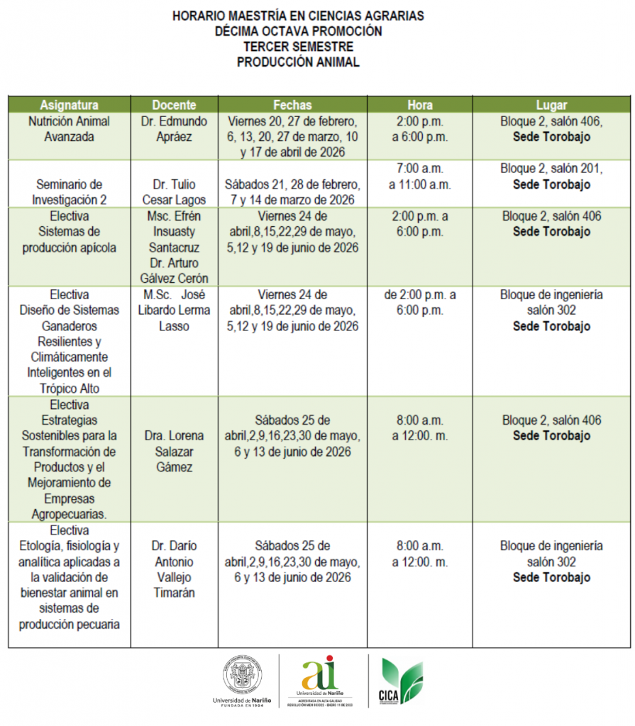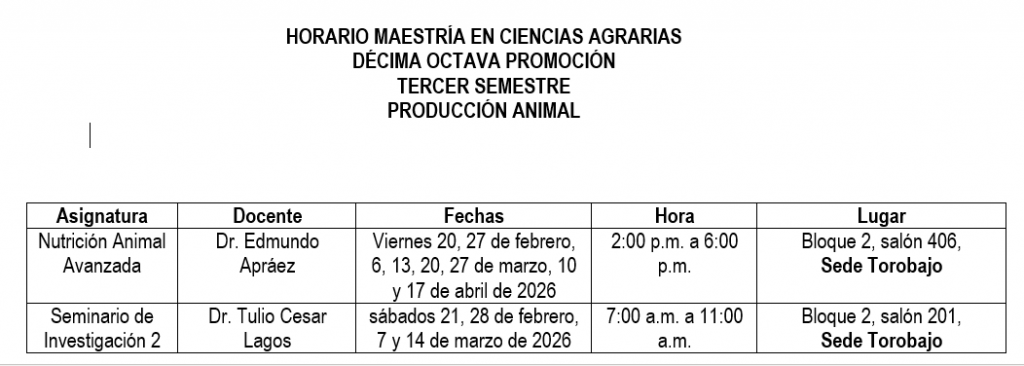 MAESTRÍA EN CIENCIAS AGRARIAS DÉCIMA OCTAVA PROMOCIÓN TERCER SEMESTRE PRODUCCIÓN ANIMAL