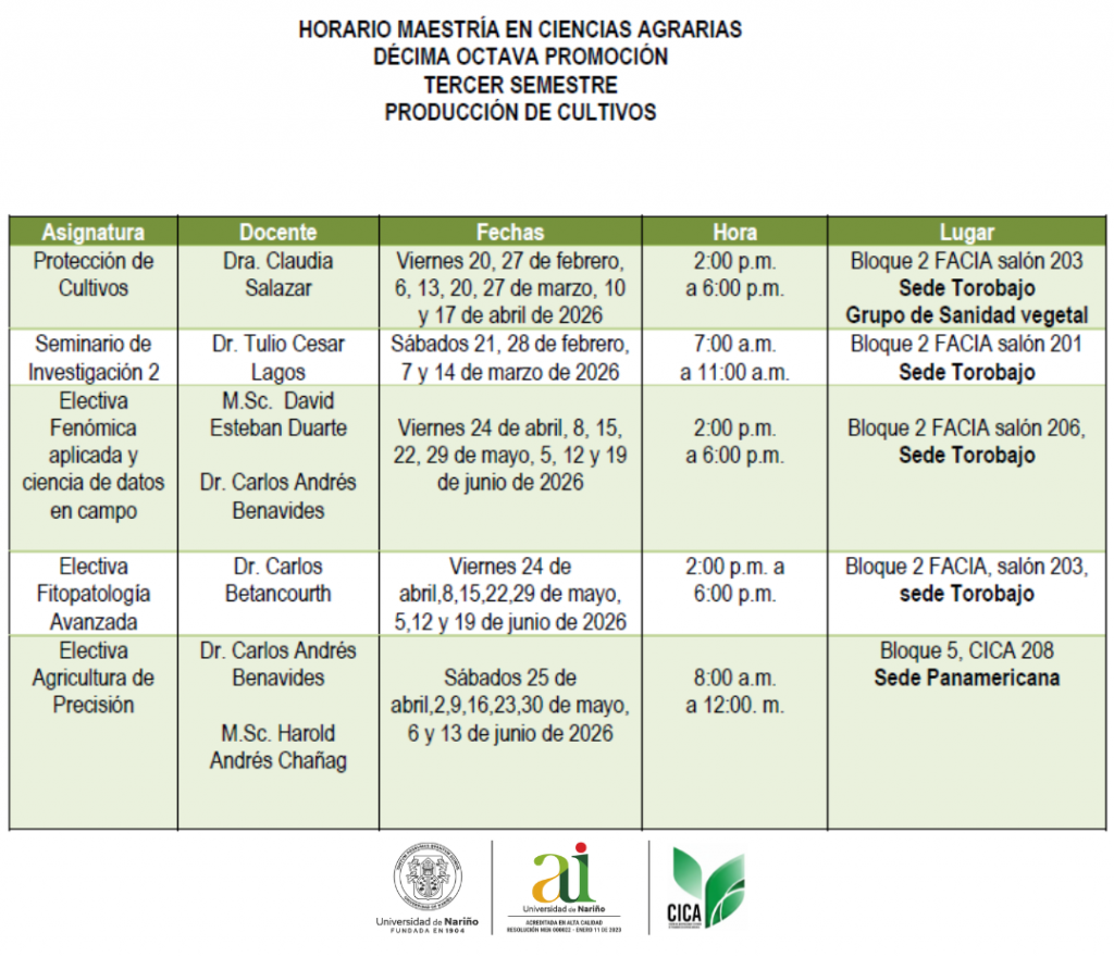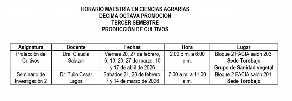 Maestría en Ciencias Agrarias Tercer semestre