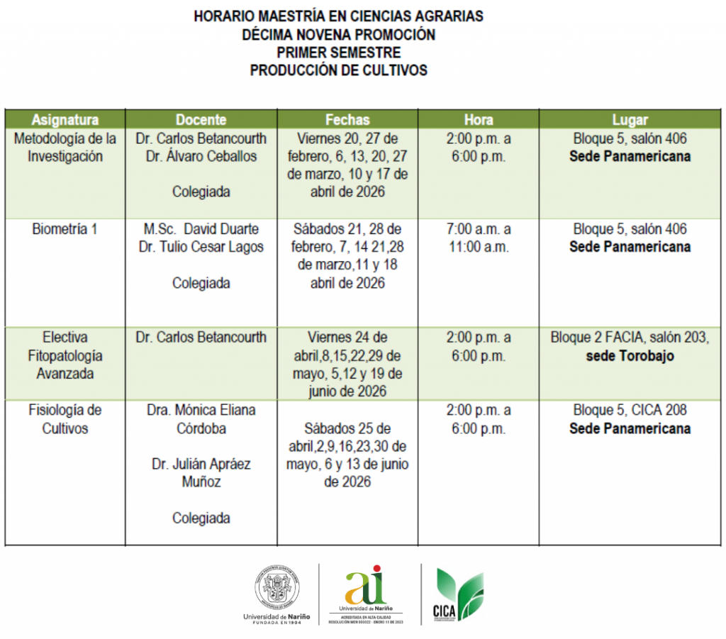 Maestría en Ciencias Agrarias Primer semestre