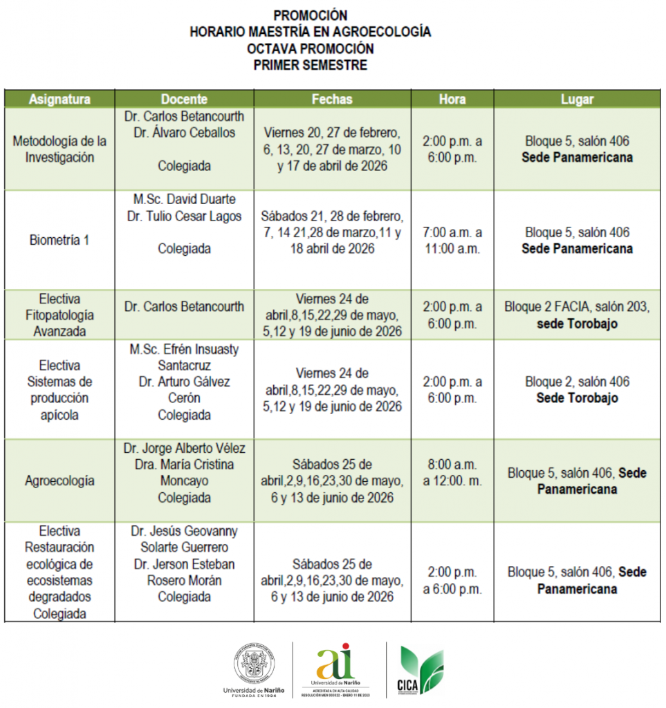 MAESTRÍA EN AGROECOLOGÍA OCTAVA PROMOCIÓN PRIMER SEMESTRE